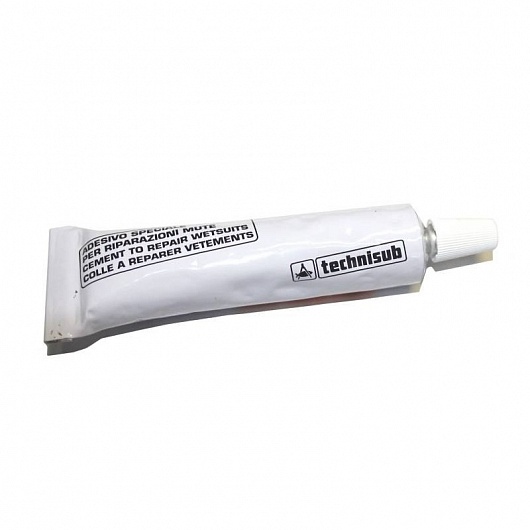 Клей для ремонта изделий из неопрена: гидрокостюмов, перчаток, ботов, носков и др. Производитель Aqualung Technisub. Перед склеиванием обе стороны необходимо обезжирить и просушить. Нанести клей на обе стороны, места склеивания сильно сжать на 15-20 секунд. Склеенный неопрен нужно просушить в течение суток для лучшего схватывания клея, в это время изделие лучше не использовать. Объем 20 грамм.