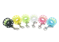 Катушка-шпуля пластиковая в комплекте с двусторонним карабином из нержавеющей стали.