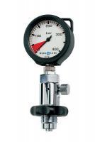 Манометр предназначен для проверки давления в баллонах с вентилем типа DIN. Рабочее давление до 400 бар. Оснащен кнопкой стравливания давления после проверки.