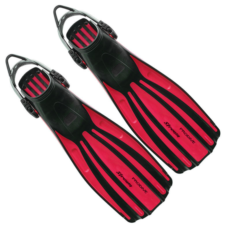 Ласты Prodive Stream с пружиной в красном цвете. Универсальные ласты подойдут для любой техники плавания. Ребра жесткости позволят комфортно чувствовать себя в течении.
