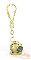 Латунный брелок в форме трехболтового водолазного шлема с компасом