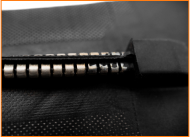 Две ленты, выполненные из хлоропренового каучука (CR), обладающего превосходными отталкивающими свойствами по отношению к воде, жирам, каплям токсичных аэрозолей. Материал, применяемый в производстве лент, характеризуется отличным сопротивлением воздействию атмосферных явлений в широком диапазоне температур. Также он отлично отражает инфракрасные и ультрафиолетовые лучи, световые вспышки различного характера.