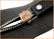 Гибкий и мягкий ползунок из материала с высокими показателями коррозионной стойкости, обеспечивающий совершенно герметичное, надежное, комфортное и удобное смыкание зубьев молнии.
